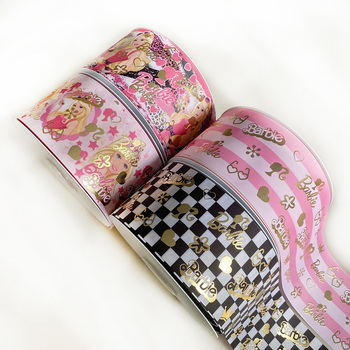 الوردي 3 "الشريط دمية فتاة الذهب ختم Grosgrain الشريط للشعر القوس