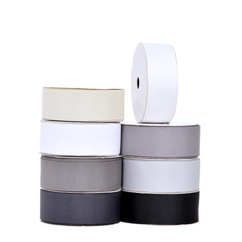 Marchandises existantes de haute qualité couleur unie emballage cadeau ruban polyester noir blanc gris série ruban gros-grain
